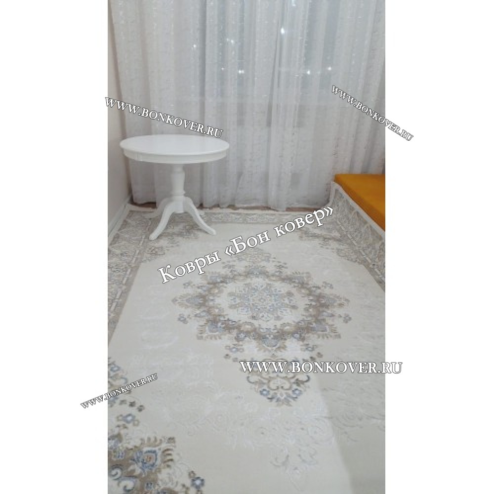 Красивый Турецкий Ковер Для Гостиной Медальон Дизайн 04 наполняет интерьер комнаты теплом и уютом, гармонично сочетает в себе изящество и стиль. Он соткан из экологически чистого сырья, комфортный и долговечный.